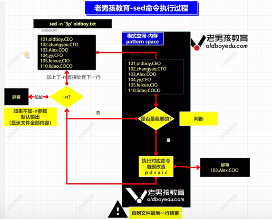 sed (stream editor)流编辑器,sed把处理的内容(文件),当作是水,源源不断的进行处理,直到文件末尾