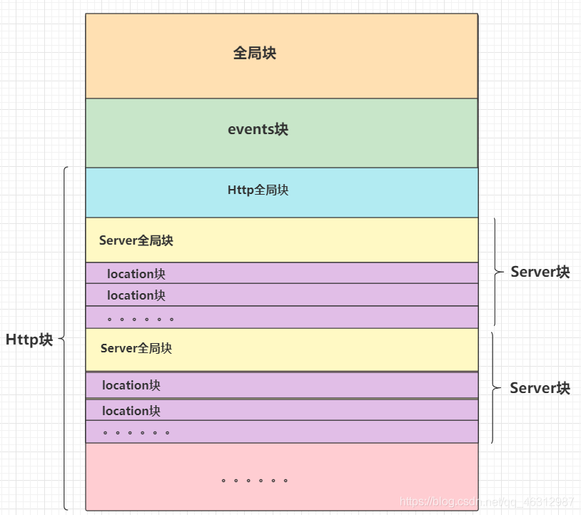 3、而每个 server 块也分为全局 server 块,以及可以同时包含多个 location 块。