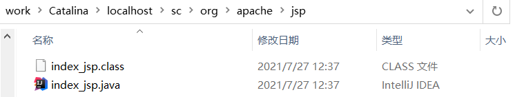 可以看到 jsp转换成产生了java文件和class文件,即 java程序源码文件和类文件