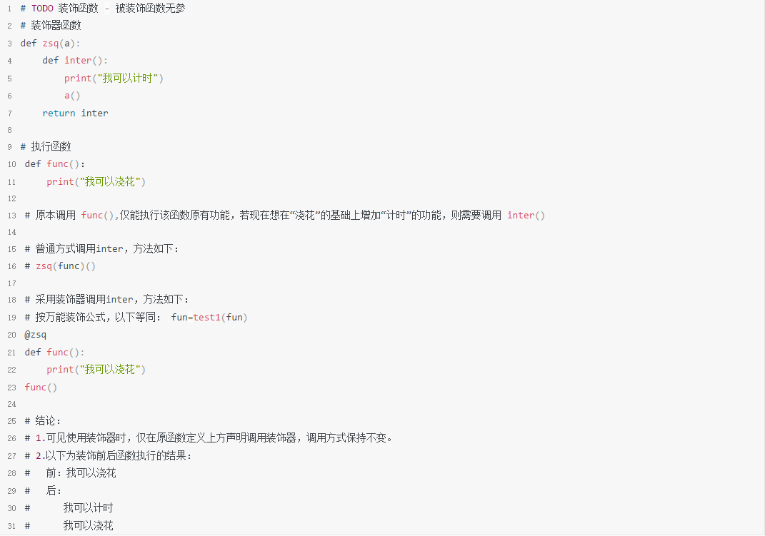 只要你被装饰,那么相当于这个被装饰的函数的函数名=装饰器(被装饰的函数名) -- 无论怎样,先记住它