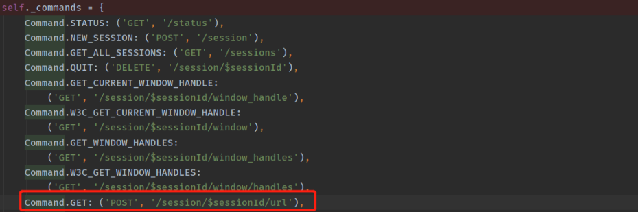 (4)可见,完全可以跳过selenium,自己通过requests模块构建请求信息发送给驱动程序,从而驱动浏览器执行相关操作。