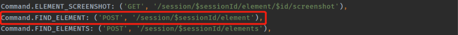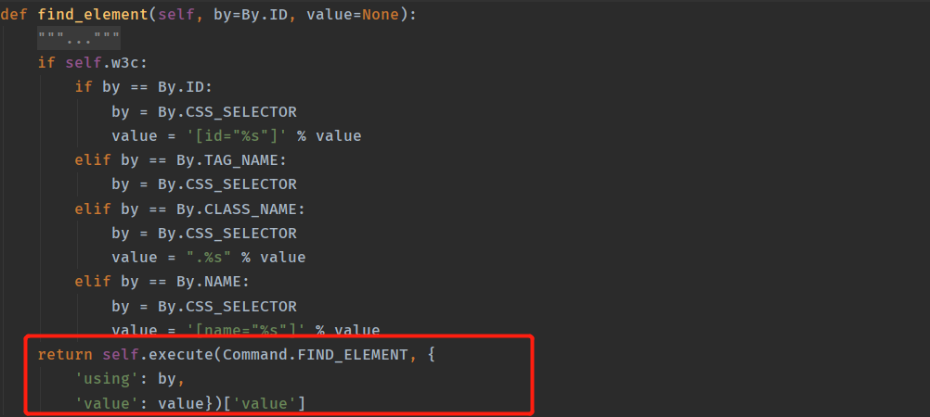 通过execute方法,按find_element_by_id命令的接口信息构建http请求信息,并发送http请求: