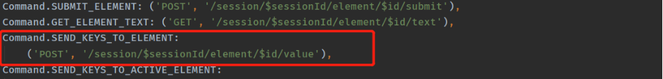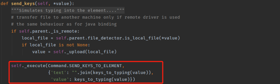 通过execute方法,按send_keys命令的接口信息构建http请求信息,并发送http请求: