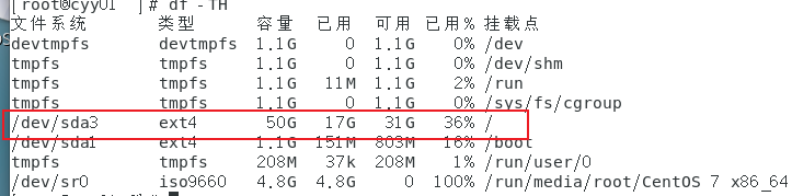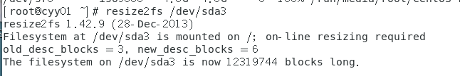 输入 redize3fs /dev/sda3 (我是3,你们自己看着来)