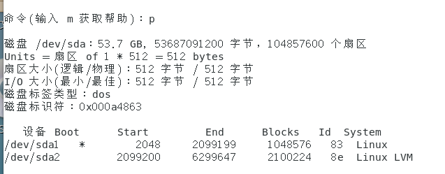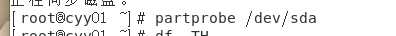 ⑥ 输入 partprobe /dev/sda 通知下操纵系统分区表已经发生了变化