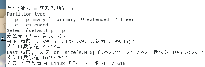 ③ 输入n , 分区号那里要么写要么默认回车都可以
