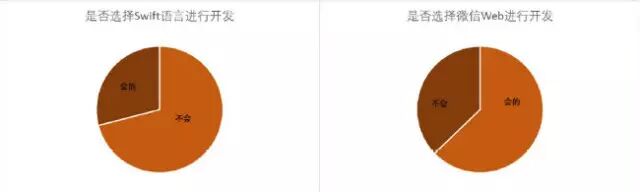 Swift和微信是工程师眼中的网红有多少移动端开发工程师在未来6个月会选择使用Swift语言进行开发?超过三分之二。这表明,作为 Objective-c 的继任者,Swift 将会有飞速的发展,随着时间的积累,更多的 App 将采用这种更简洁的语言开发iOS 应用。