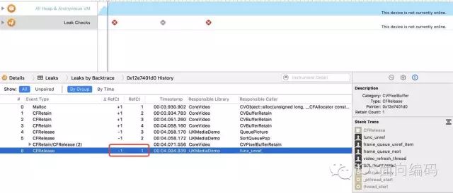 CVPixelBuffer结束引用时引用计数不为0导致内存泄露