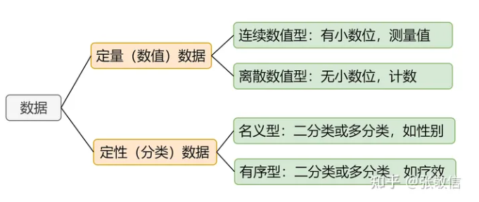 一般数值型数据更容易是连续型数据,而字符串型数据更容易是名义型数据。