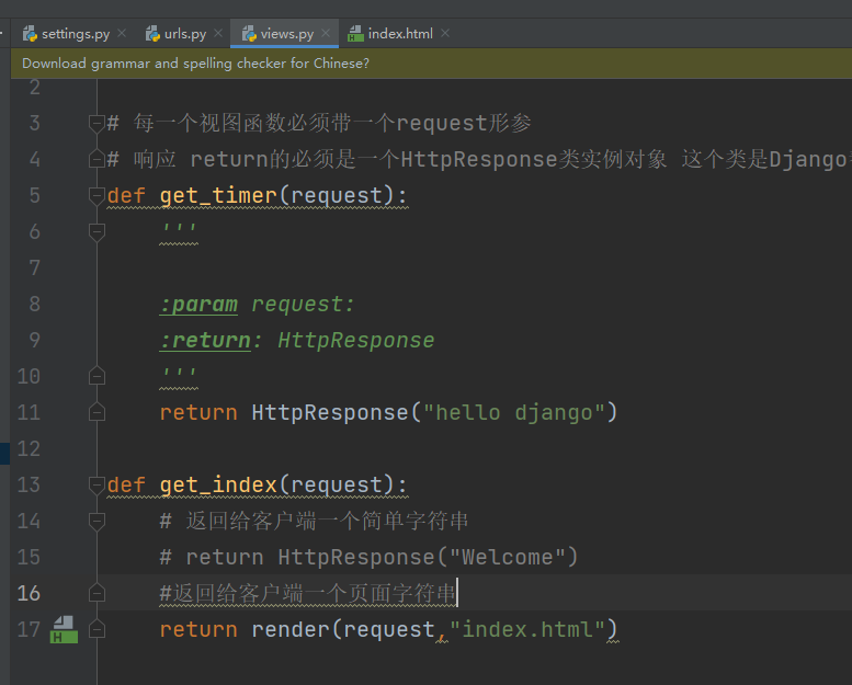 # 响应 return的必须是一个HttpResponse类实例对象 这个类是Django帮忙构件好的吗,只需要引用一下就好(L18所示)