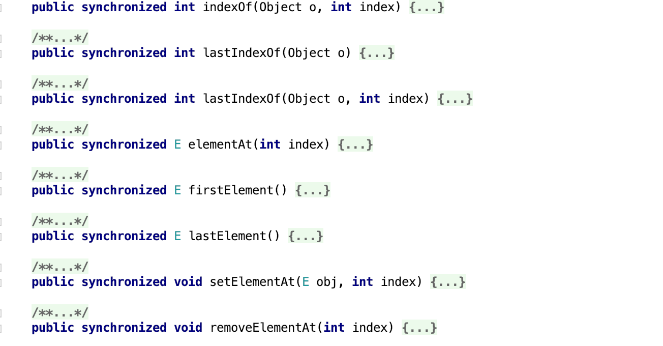 public synchronized int indexOf(Object o, int index); 容器对象多个线程共享的时候,用vector。