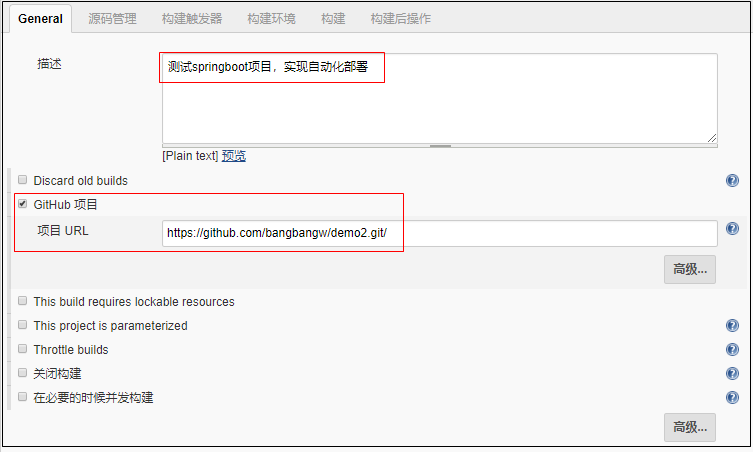 大体步骤:General(基础配置)--》源码管理--》构建触发器--》构建环境--》构建--》构建后操作