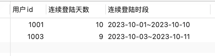 -- 此处若只需要连续登陆的用户id,使用count()聚合即可;需要连续登陆起止日期使用开窗函数比较方便(若使用聚合后面需要考虑自连接的情况)