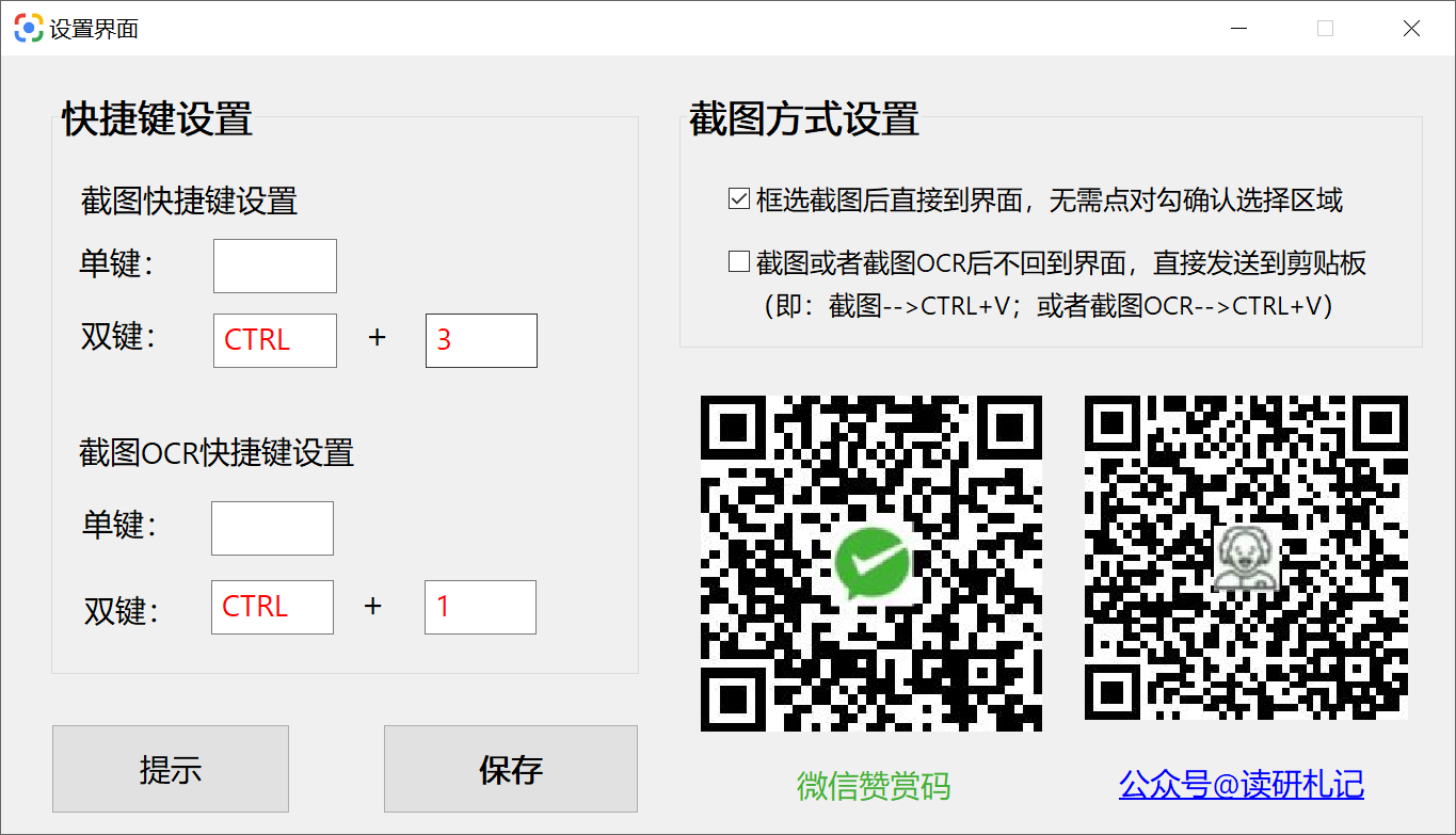 □ 截图或者截图OCR后不回到界面,直接发送到剪贴板,相当于省去到界面那里选择部分文本进行复制