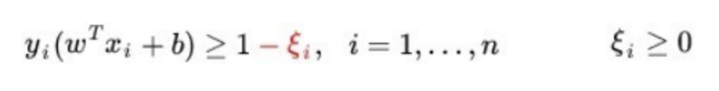 松弛变量允许实际分类中一定的不准确性存在,引入松弛变量后原先的约束条件变为: