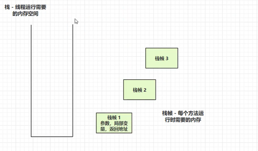 - 栈 - 线程运行需要的内存空间;由多个栈帧(Frame)组成。