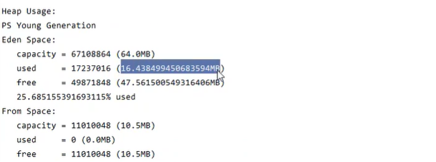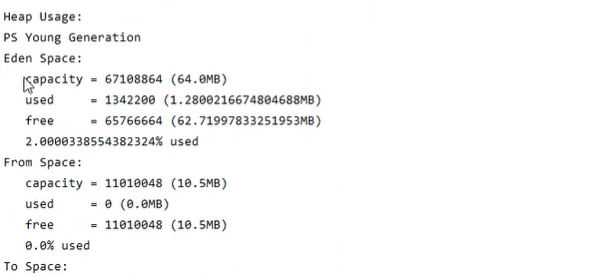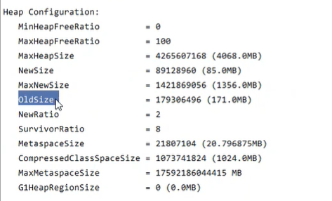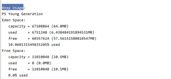 jmap -heap 进程id:查看对应进程的堆内存占用情况