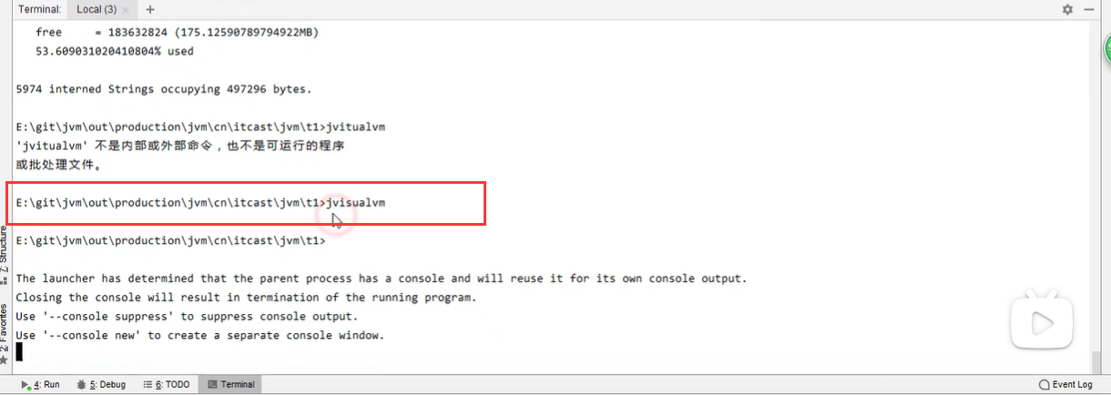 jps : 查看系统中的java进程。 如果报错需要切换到 jdk安装目录的bin目录下进行。