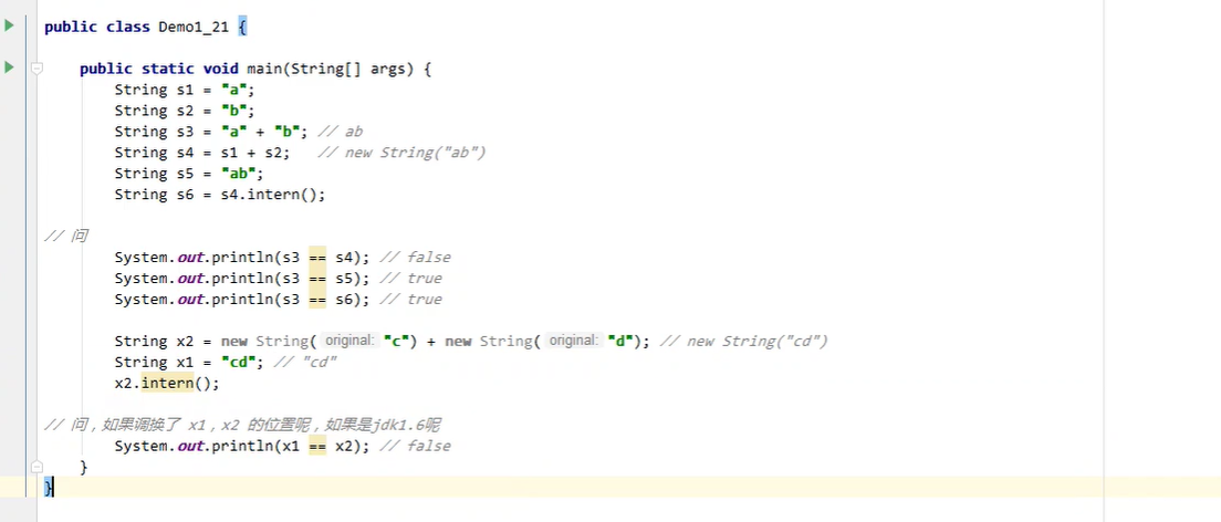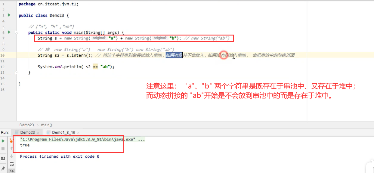 - 会将字符串s 拷贝一份并将该拷贝的那份放入串池中,而原本的字符串s 如果存在于堆中,此时仍然在堆中。最终返回串池中的对象(1.6中)