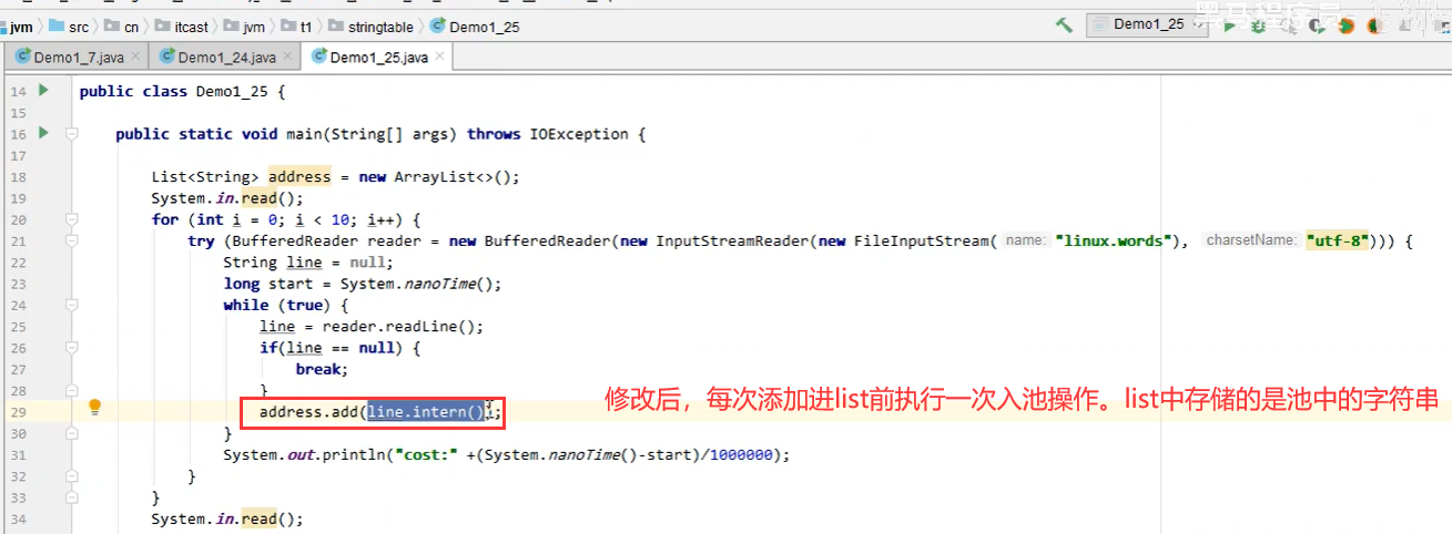 intern方法,主动将串池中还没有的字符串对象放入串池。