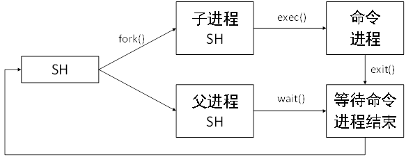 (2)利用fork()和execlp()函数实验一个shell的基本功能,如图所示。用户输入命令后,按下列步骤执行用户命令: