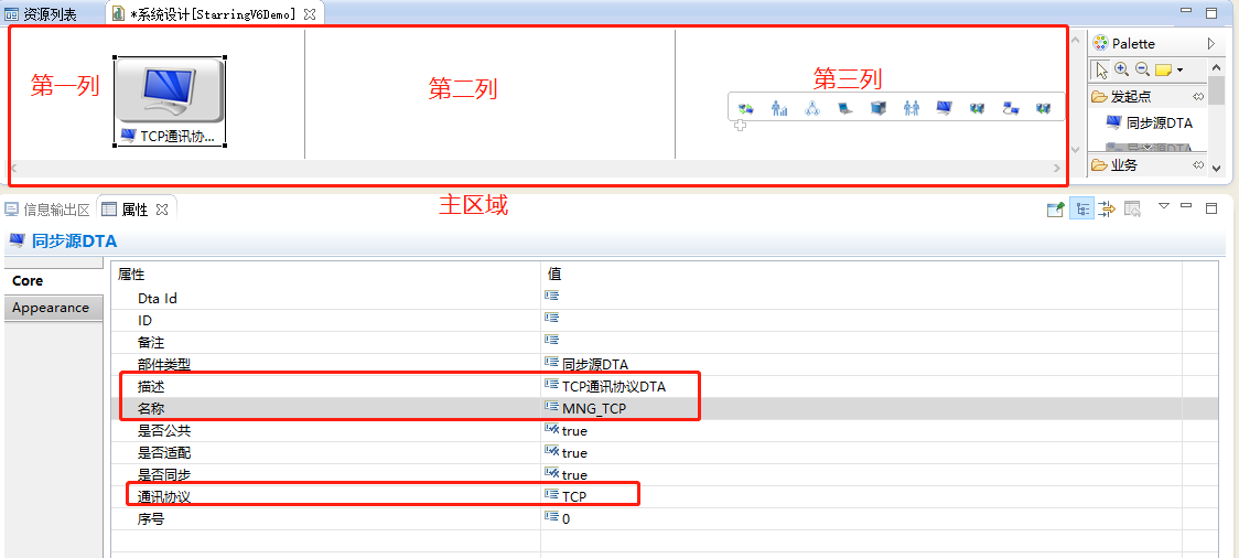 点击右侧“发起点”中的“同步源DTA”,然后鼠标点击主区域的第一列,生成同步源DTA对象(点击选中,在主区域左键点击一下会生成一个选中对象)