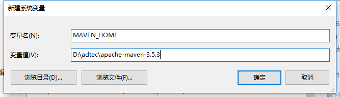 2.2点击新建配置MAVEN_HOME,变量值是你maven的压缩包的解压地址。
