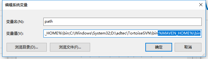 2.3编辑path环境变量,在变量值后边加;%MAVEN_HOME%\bin。注意在每个环境变量值直接都用英文输入法输入“;”符。