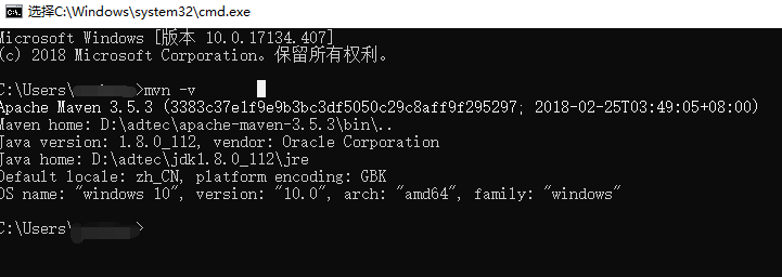2.4验证maven环境配置,打开cmd,输入mvn -v。如果出现以下内容代表配置成功。注意:验证时需确定jdk环境变量是否已配置,若没有配置jdk环境变量,则会验证失败。