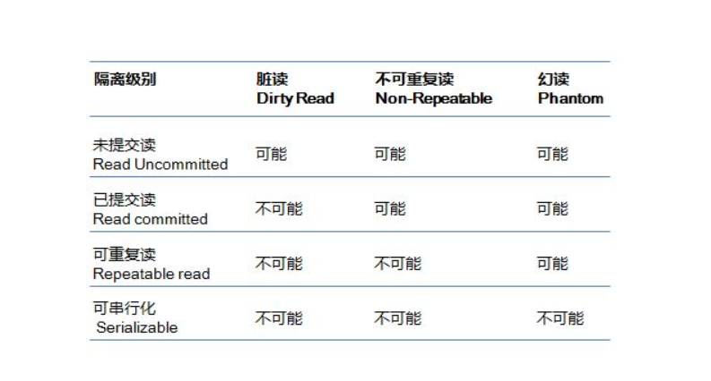 这样在用户A的事务执行过程中,别的用户都将无法对任何数据进行更新、插入和删除的操作,直到用户A的事务回滚或者提交为止。这是四个隔离级别中限制最大的级别。因为并发级别较低,所以应只在必要时才使用该选项。