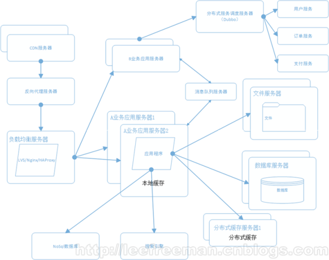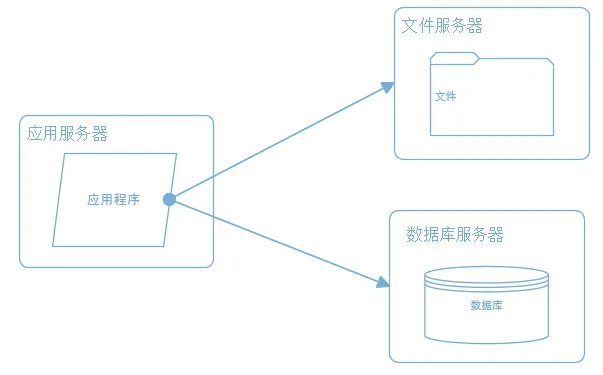 随着业务的扩展,一台服务器已经不能满足性能需求,故将应用程序、数据库、文件各自部署在独立的服务器上,并且根据服务器的用途配置不同的硬件,达到最佳的性能效果。