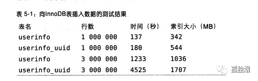 另外,附一个测试表给你们,表名带uuid的就是用uuid作为主键。大家看一下就知道性能差距了: