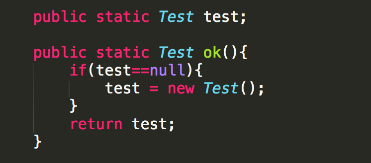 4.网友的改进意见图:这个类写的有问题,每次调用ok方法都会创建一个新的test对象,应该写一个静态的变量变量保存创建的对象,这个对象等于null时调用new Test()创建一个新对象,否则直接使用这个变量