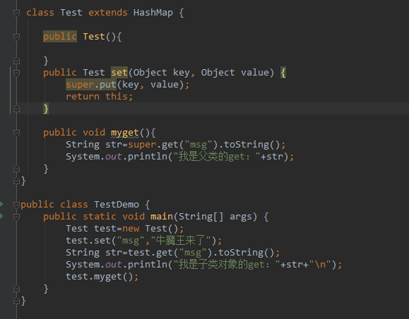 结果是:子类和父类都调用了父类hashmap中的set,打印结果是一样的V值。