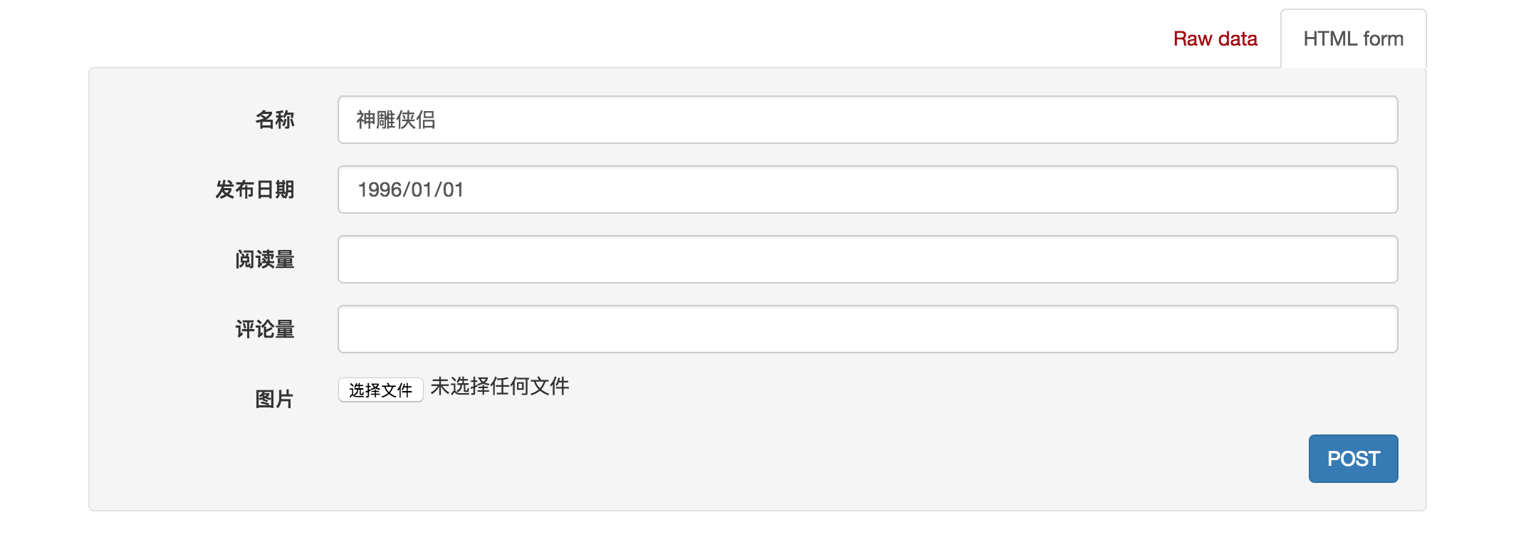 2)在页面底下表单部分填写图书信息,可以访问添加新图书的接口,保存新书: