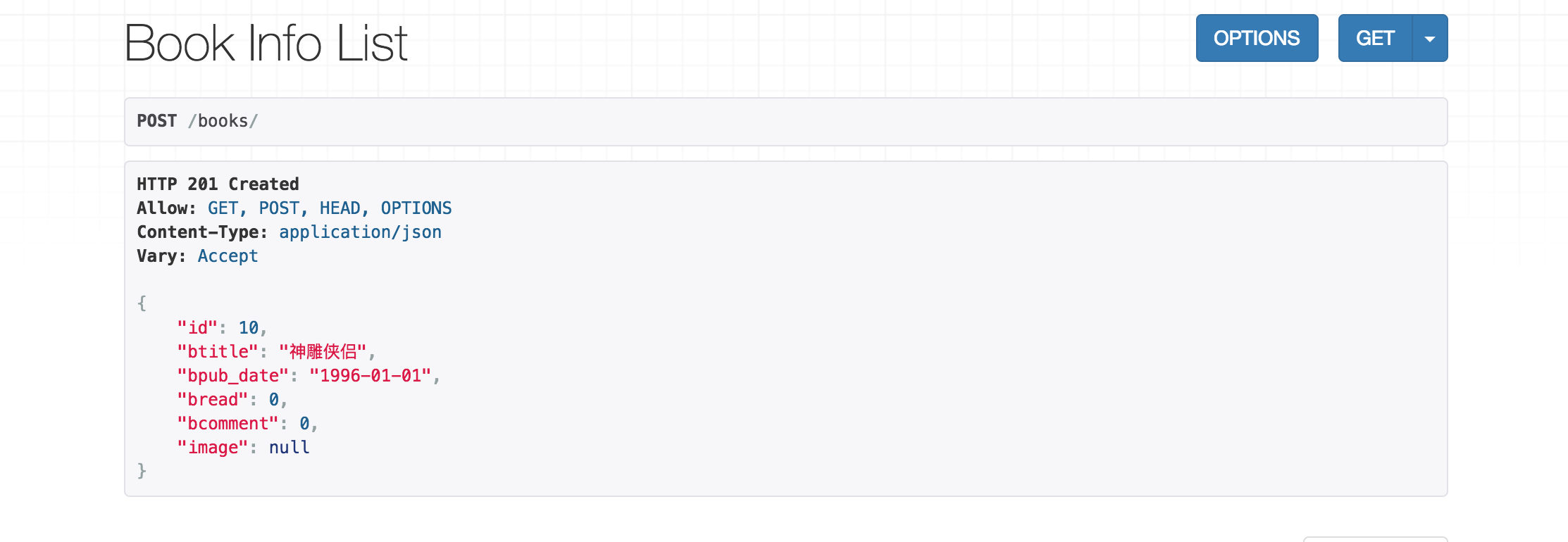 - model 指明该序列化器处理的数据字段从模型类BookInfo参考生成