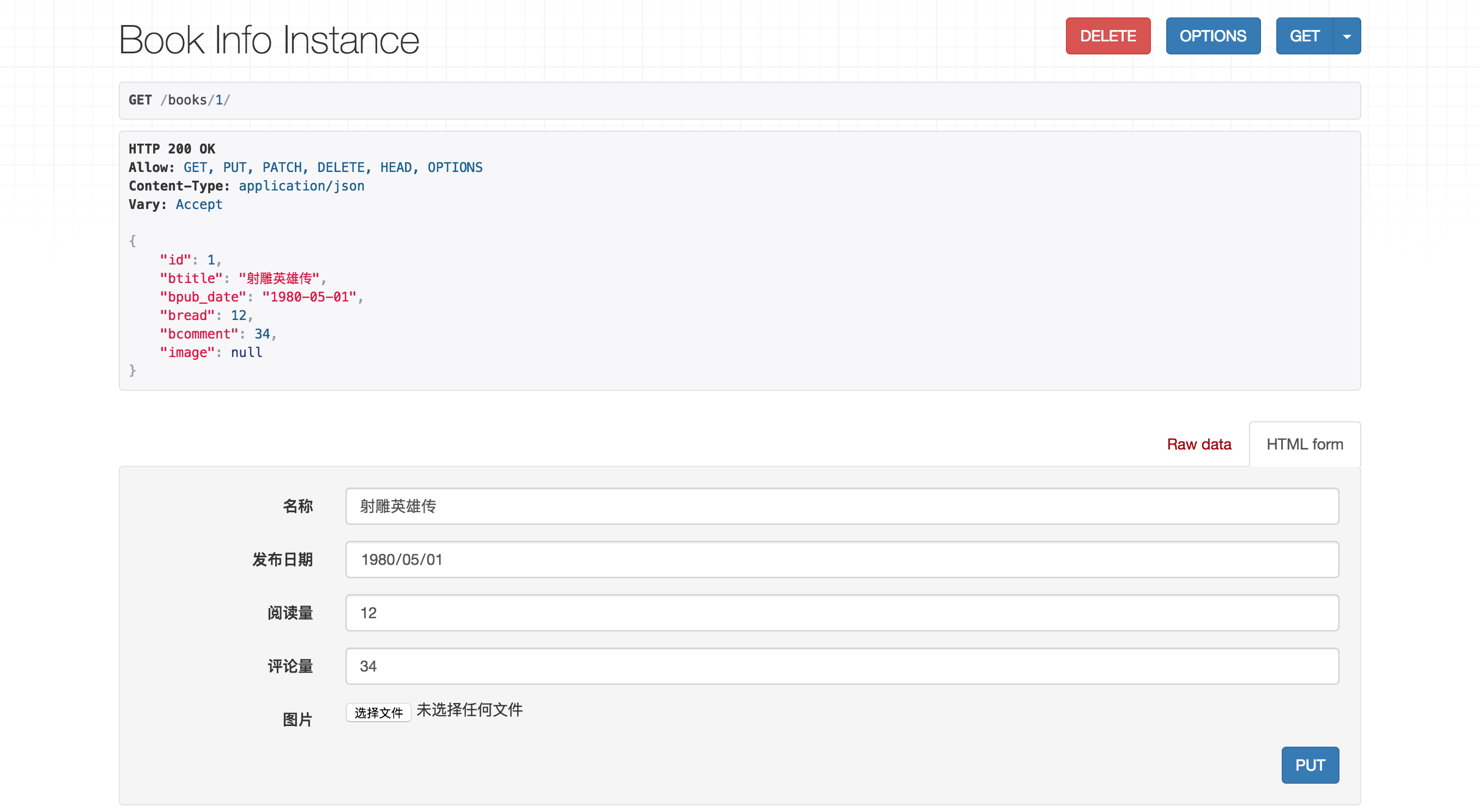 4)在页面底部表单中填写图书信息,可以访问修改图书的接口:、