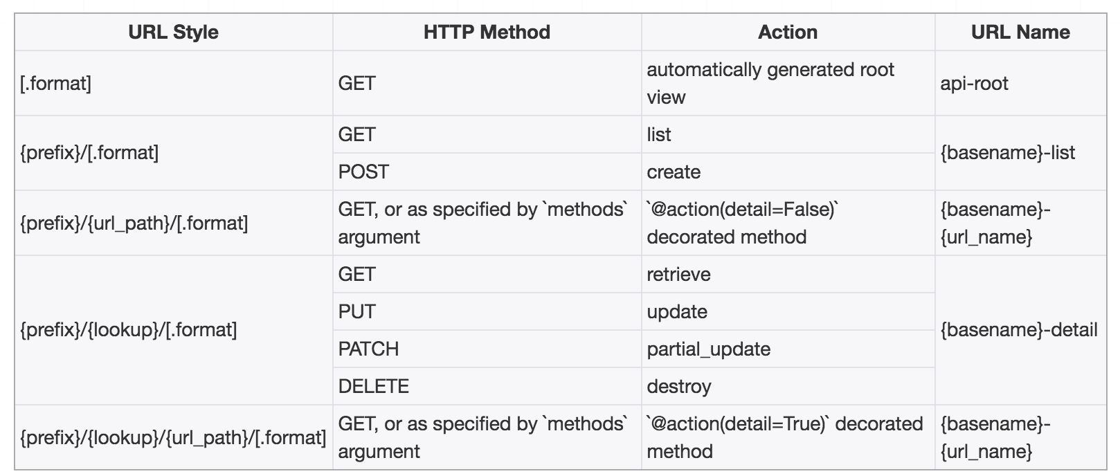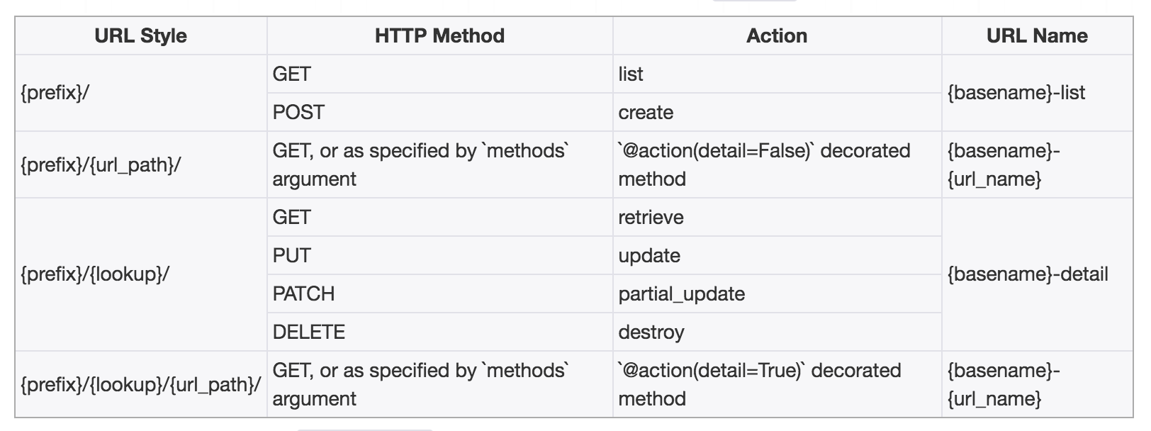 - prefix 该视图集的路由前缀