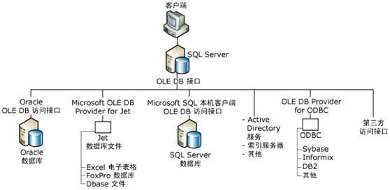 2.存储在各种可以使用 OLE DB 访问接口访问的关系和非关系数据源中的异类数据。