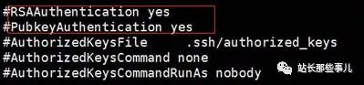 我们需要将"RSAAuthentication"、"PubkeyAuthentication"前面的#去掉,以及"PasswordAuthentication"前面加上#。