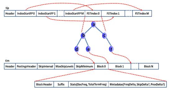 下面是词典索引和词典主存储之间的一个对应关系图:
