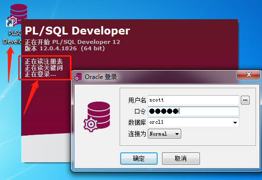 注意:如果输入信息不正确,打开plsql,会显示重新输入。