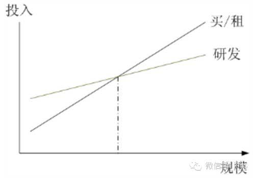 3.在一定规模效应基础上,研发的投入都是值得的。上图是一个自主研发和购买商用系统的投入产出比对比,实际上,在上图的交叉点左边,购买商用系统都是更加实际和经济性更好的选择,只有在规模超过交叉点的情况下,自主研发才能收到较好的经济效果。实际上,规模化达到如此程度的公司其实并不多,不过淘宝网已经远远超过了交叉点。