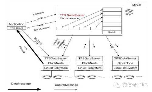 淘宝TFS文件系统在核心设计上最大的取巧的地方就在,传统的集群系统里面元数据只有1份,通常由管理节点来管理,因而很容易成为瓶颈。而对于淘宝网的用户来说,图片文件究竟用什么名字来保存实际上用户并不关心,因此TFS在设计规划上考虑在图片的保存文件名上暗藏了一些元数据信息,例如图片的大小、时间、访问频次等等信息,包括所在的逻辑块号。而在元数据上,实际上保存的信息很少,因此元数据结构非常简单。仅仅只需要一个fileID,能够准确定位文件在什么地方。