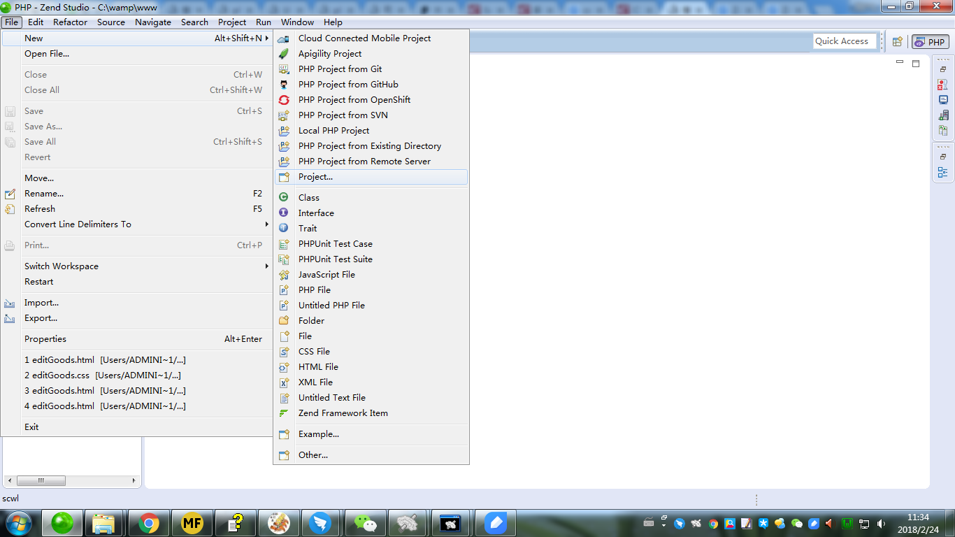 zend studio将站点根目录下项目导入编辑器