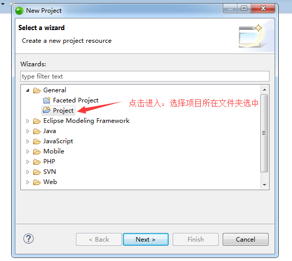 补充:双击箭头所指Project或者点击Next按钮,进入下个页面,如下: