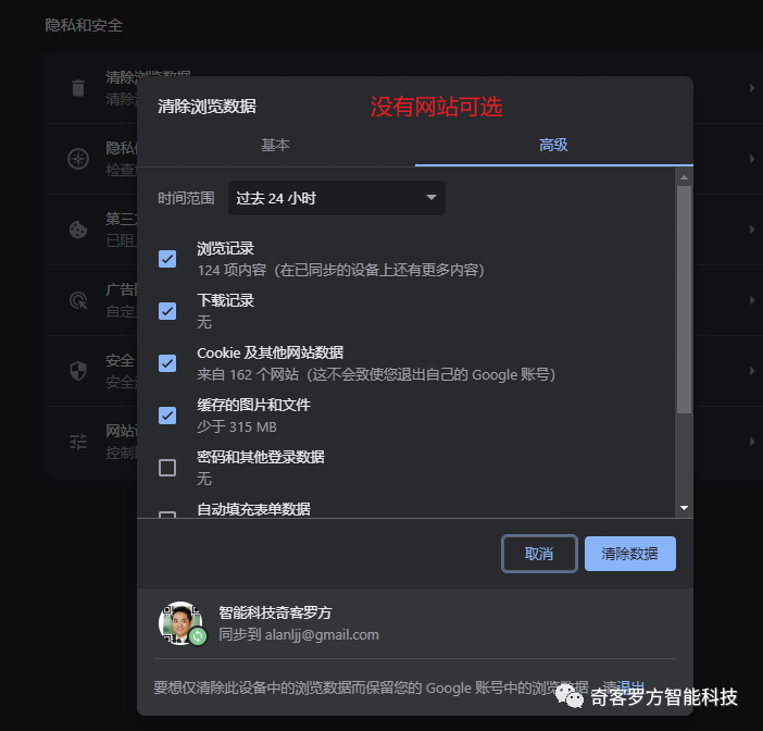 Google Chrome清除指定网站的所有缓存 浏览记录、Cookie、缓存及其他数据