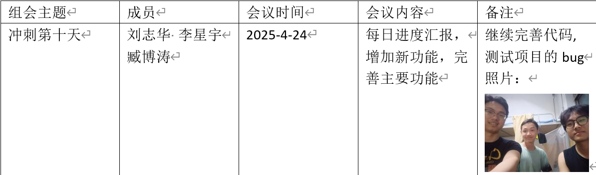 冲刺第十天 刘志华、李星宇、臧博涛 2025-4-25 系统验收测试、问题复盘、冲刺总结 见证设备管理系统从 0 到 1