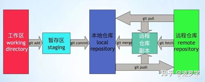 远程版本库(remote repository),与本地仓库概念基本一致,不同之处在于一个存在远程,可用于远程协作,一个却是存在于本地。通过push/pull可实现本地与远程的交互;