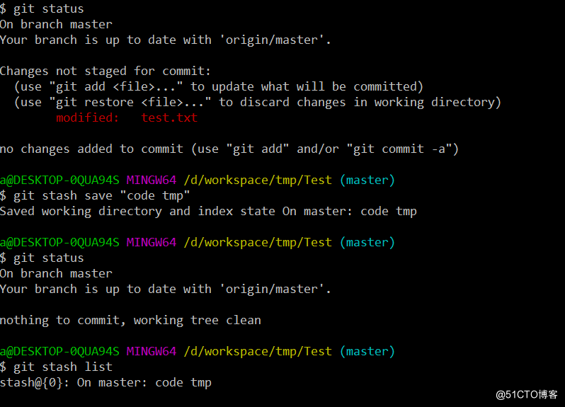 a.将工作区的修改保存到临时存储区,保证工作区的status状态是一个干净的状态